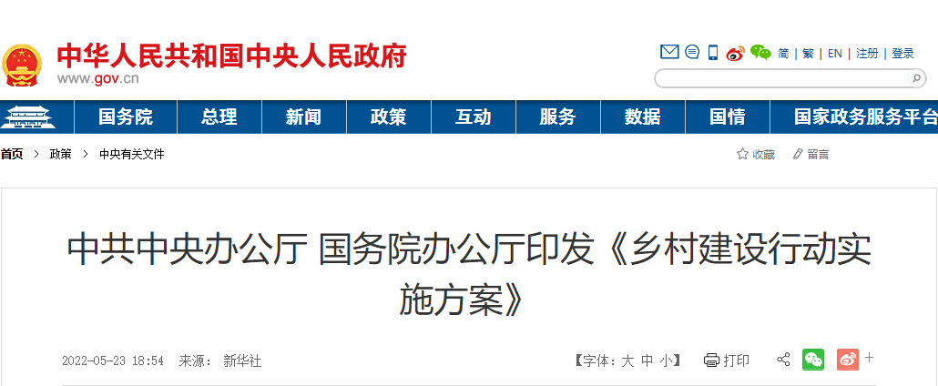 5月23日,中共中央办公厅、国务院办公厅对外公布了近日印发的《乡村建筑行动实施方案》,并发出通知,要求各地区各部门结合实际认真贯彻落实。